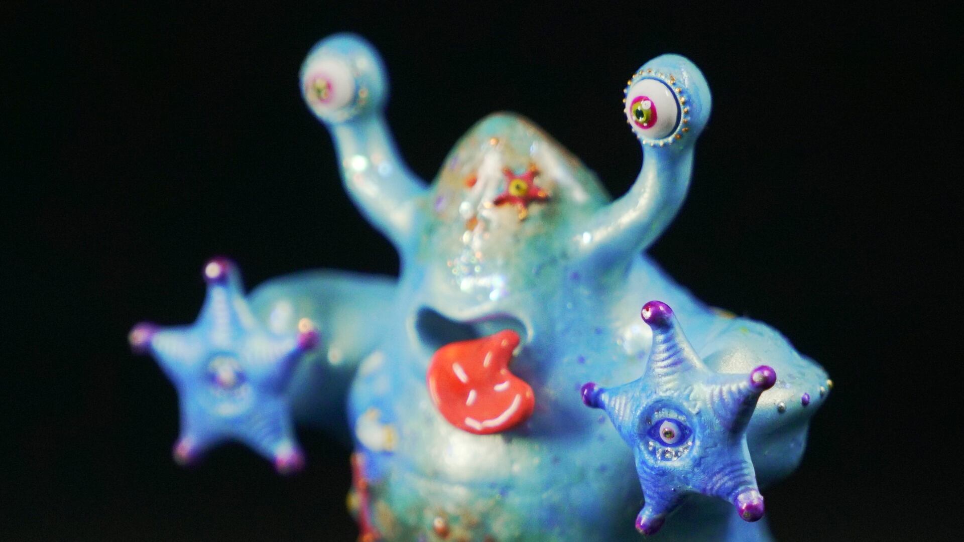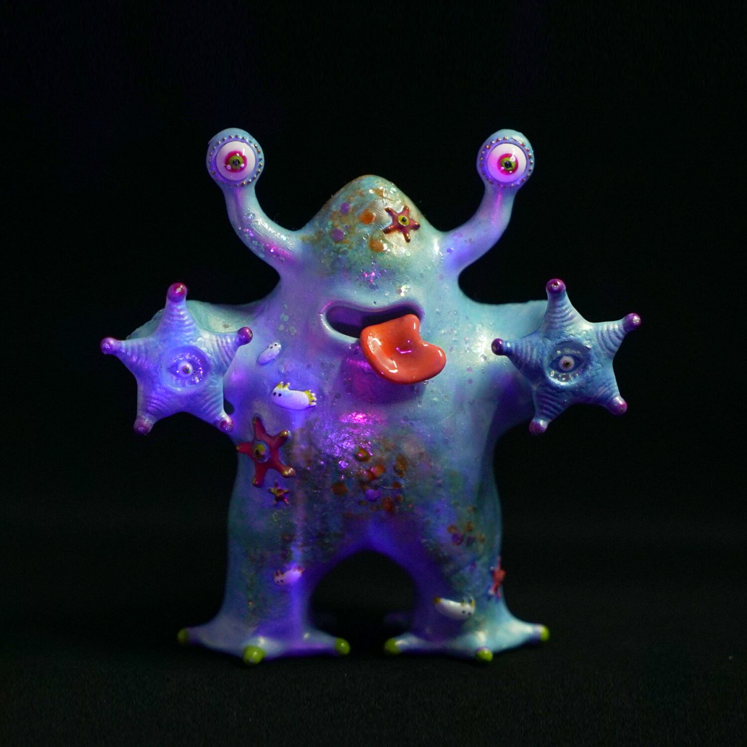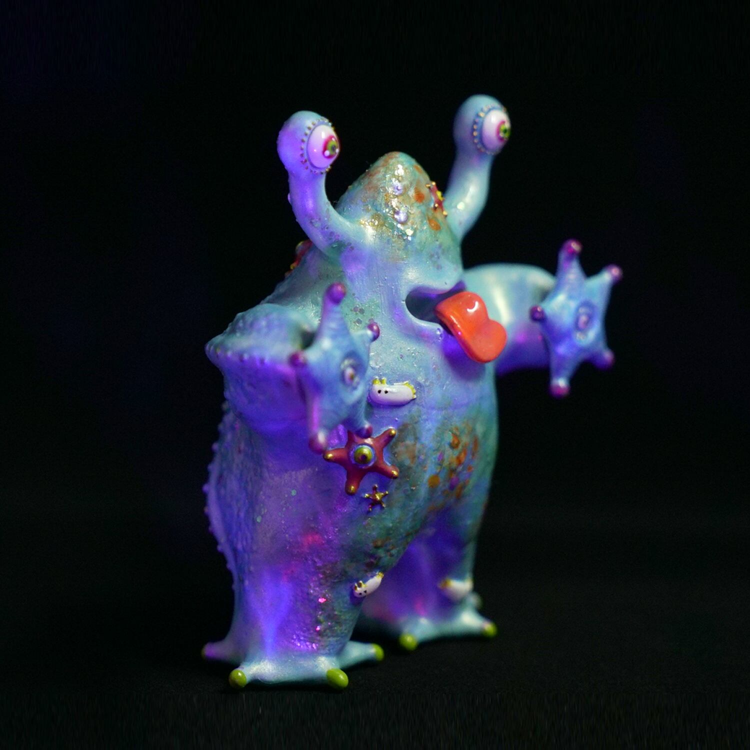A mischievous resin creature born from leftover memories and glossy surfaces. It hunts for lost stickers, collecting them like treasures on its skin.