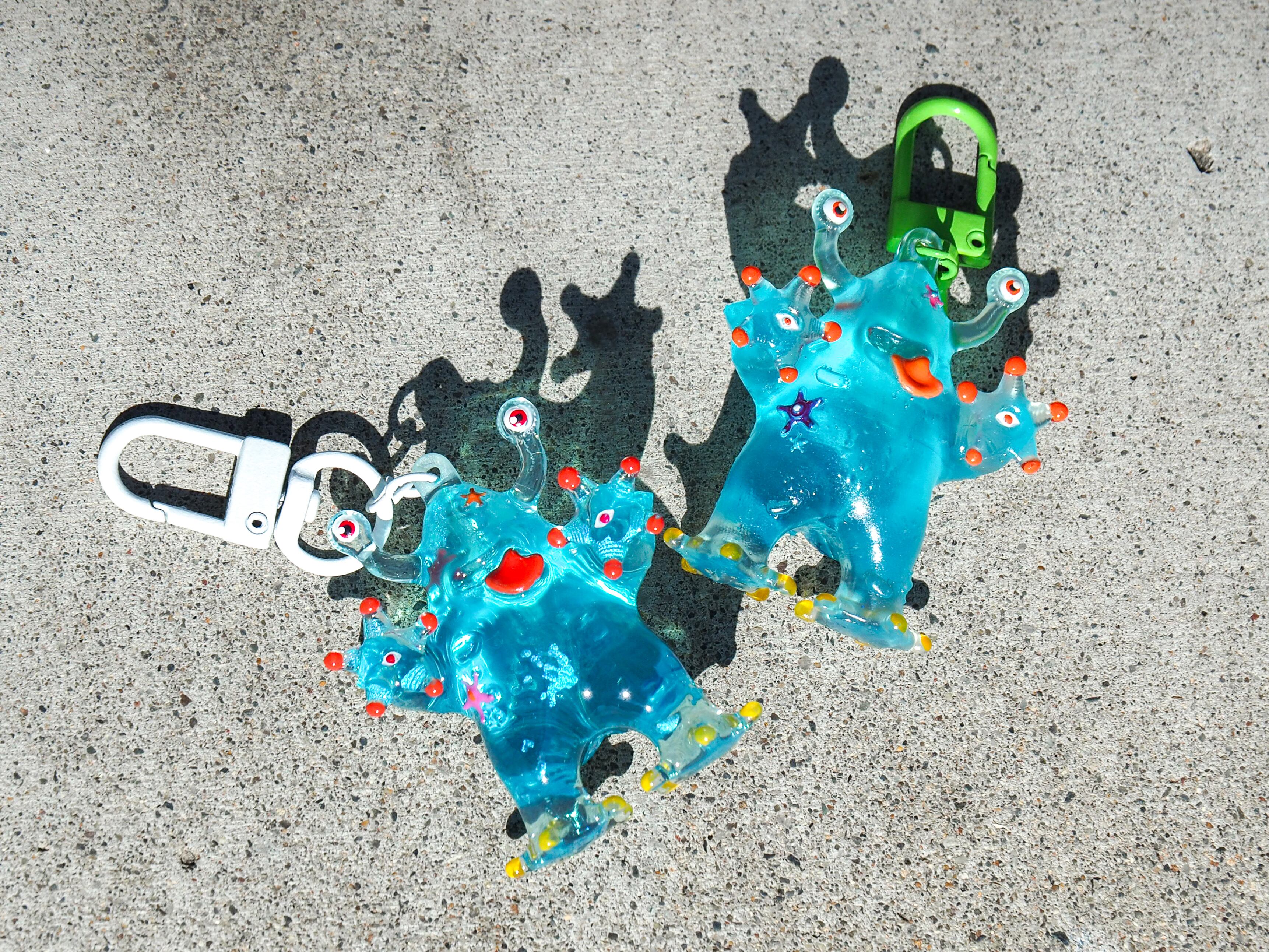 A mischievous resin creature born from leftover memories and glossy surfaces. It hunts for lost stickers, collecting them like treasures on its skin.